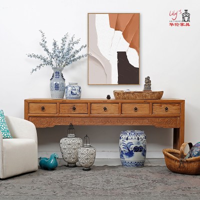 华伦家具 实木复古边几条案玄关桌 案台 案几 条几 供桌下卷