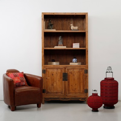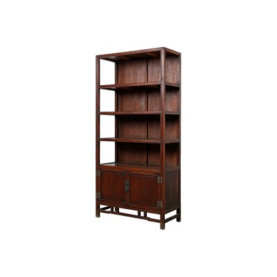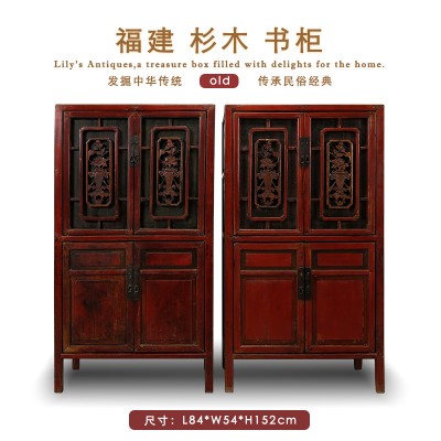 华伦家具古董收藏复古实木书柜书架落地红色柜子客厅书房置物架柜