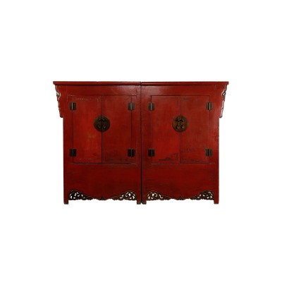 华伦家具明清大柜实木老衣柜古董家具 红漆大柜 衣柜 书柜