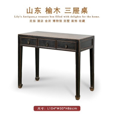 中式古典三屉桌复古老榆木玄关台边桌家居装饰桌桌案几写字桌