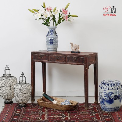 中式古典三屉桌复古老榆木玄关台边桌家居装饰桌桌案几写字桌