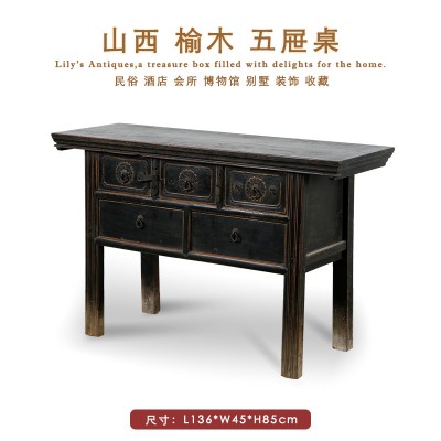 美丽华伦古董玄关桌 实木五屉桌 明清家具收藏中式老物件 榆木家具